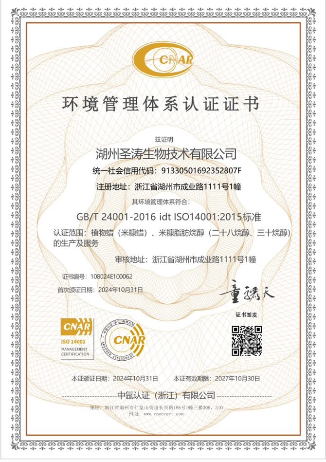 食品生產(chǎn)許可證(米糠脂肪烷醇)